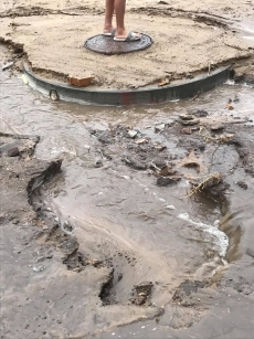 По его словам, подрядная фирма ООО «ВИК ТЕХНОЛОГИИ» подняла люк колодца выше на 50 сантиметров от основания дороги и теперь в этом месте собирается вода после дождя.