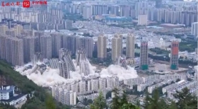 На юге Китая в городе Куньмин провинции Юньнань снесли сразу 15 недостроенных небоскребов, так как их строительство задержалось на семь лет.