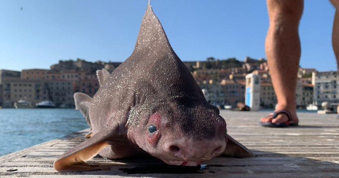 В Италии необычного вида акула «с мордой свиньи» шокировала поймавших ее моряков.