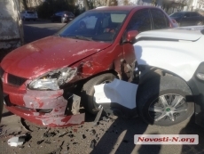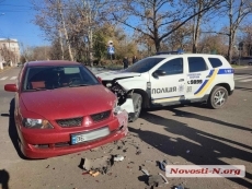 В центре Николаева на пересечении улиц Никольской и Инженерной полицейский автомобиль Renault Duster столкнулся с Mitsubishi Lancer.