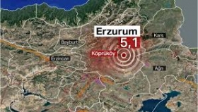 Землетрясение магнитудой 5,1 сотрясло Кёпрюкёй в пятницу, примерно в 50 км к востоку от столицы провинции Эрзурум на востоке Турции.