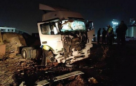 Эвакуатор, водителя которого не удалось установить, врезался сзади в микроавтобус, который стоял на обочине дороги на 9-м километре шоссе Шанлыурфа-Акчакале.