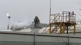 Отделение радиационной, химической и биологической защиты устанавливает причины утечки. В 11:00 спасатели ожидали прибытие автоцистерны для перекачки.