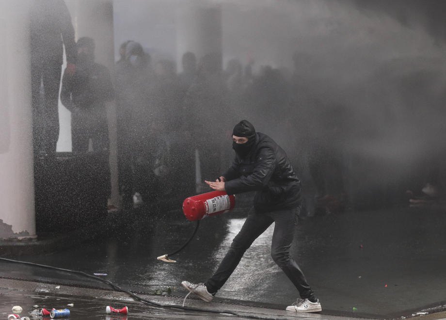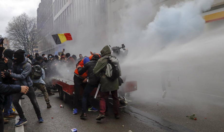 Полиция применила водометы и слезоточивый газ в ответ на брошенные в милицию фейерверки, пишет Brussel`s Times. О раненых и задержанных данных нет.