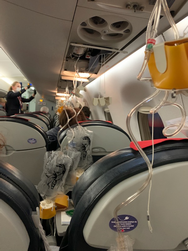 На борту находились польские депутаты Европарламента Роберт Бедронь, Богуслав Либерацкий и Эльжбета Лукациевская. После появления признаков декомпрессии в виде нехватки воздуха экипаж принял решения посадить самолет в немецком Дюссельдорфе, а не бельгийском Брюсселе.
