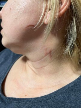Оккупанты порвали жительнице Херсонской области куртку, а также оцарапали шею и лицо. Факт травм у нее подтвержден фотографиями и свидетелями.