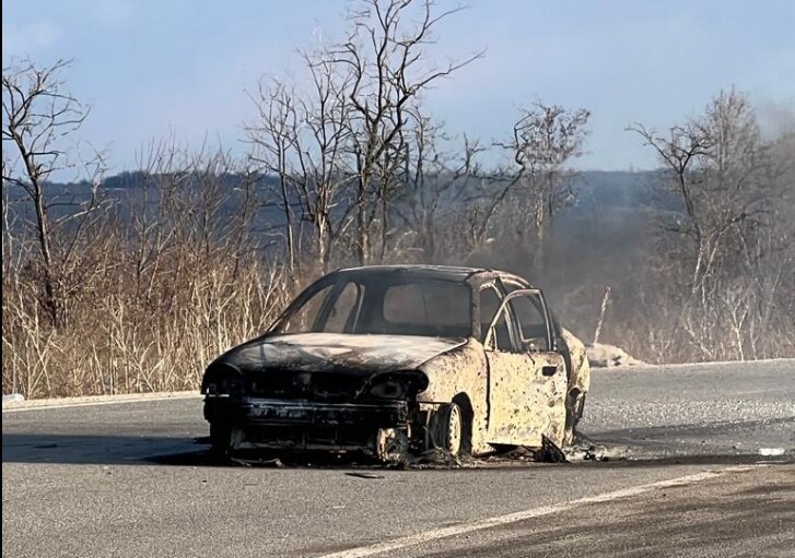 В результате обстрела на поле вдоль трассы начался пожар. В Генштабе уточнили, что колонна была обстреляна из РСЗО БМ-21 «Град».