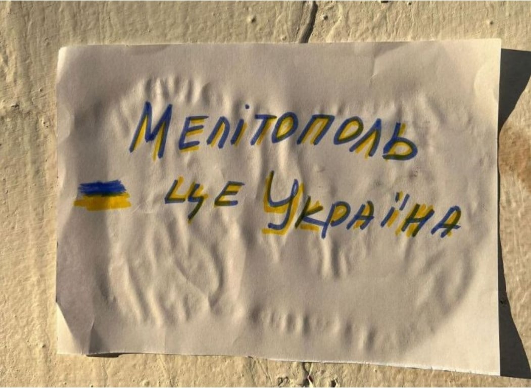 В Мелитополе жители продолжают оказывать сопротивление оккупантам: неизвестные ночью расклеивают листовки с надписью «Мелитополь — это Украина».