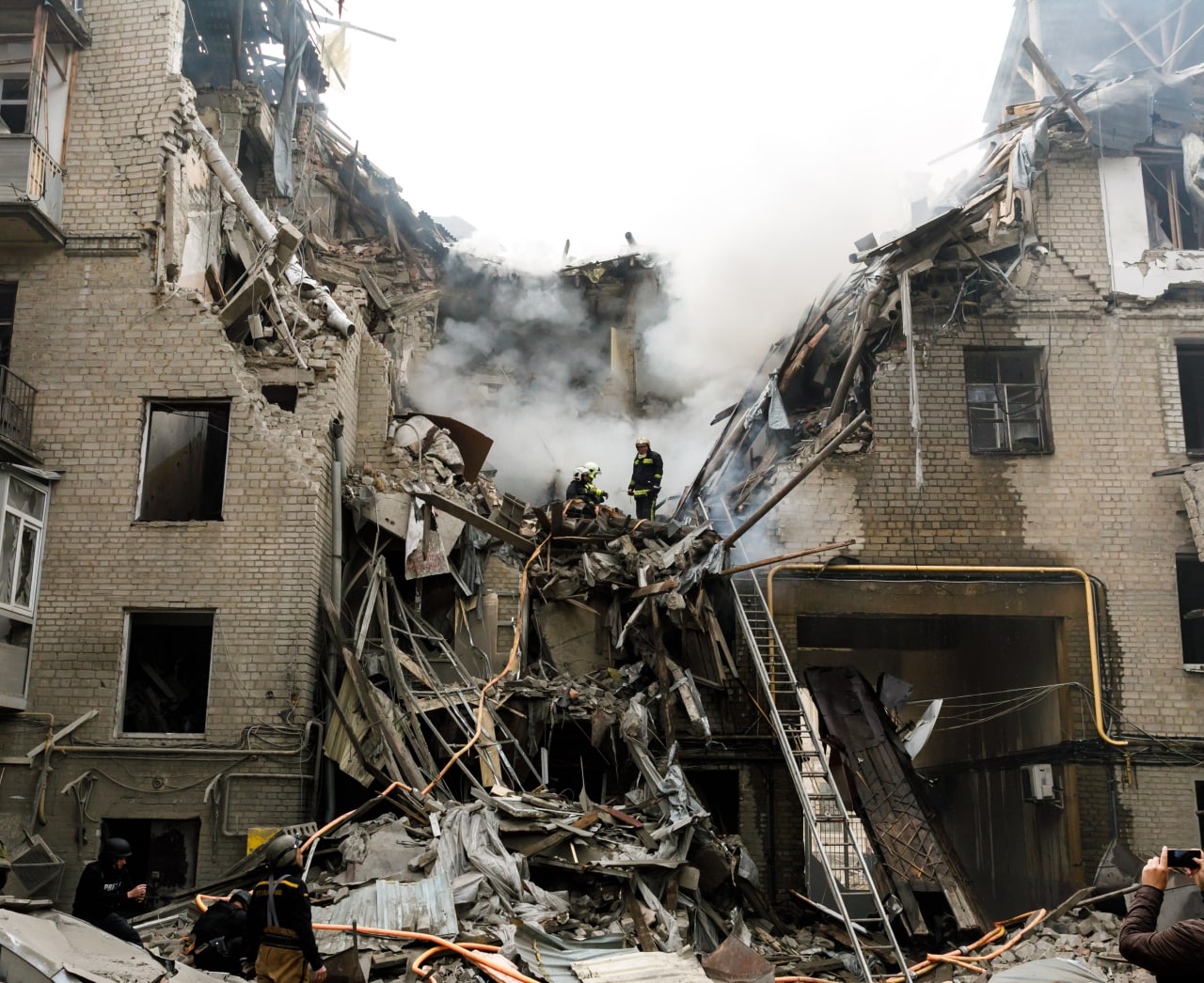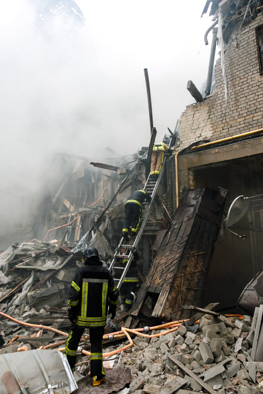По данным главы ОВА, одна из ракет попала в крышу 5-этажного жилого дома, полностью разрушив три этажа. Сейчас ведутся работы по разборке завалов. Большинство жильцов этого дома были отселены.