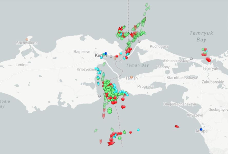 В районе Керченского пролива собрались очереди с кораблей из-за взрыва и пожара на Крымском мосту. Морские пробки образовались преимущественно из российских судов.