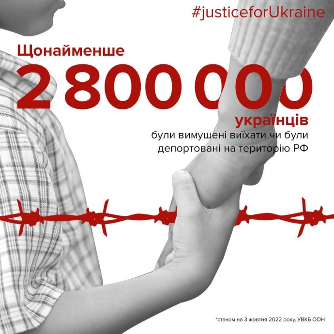 «С февраля по меньшей мере 2 миллиона 800 тысяч украинцев были вынуждены уехать или были депортированы на территорию России», - говорится в сообщении.