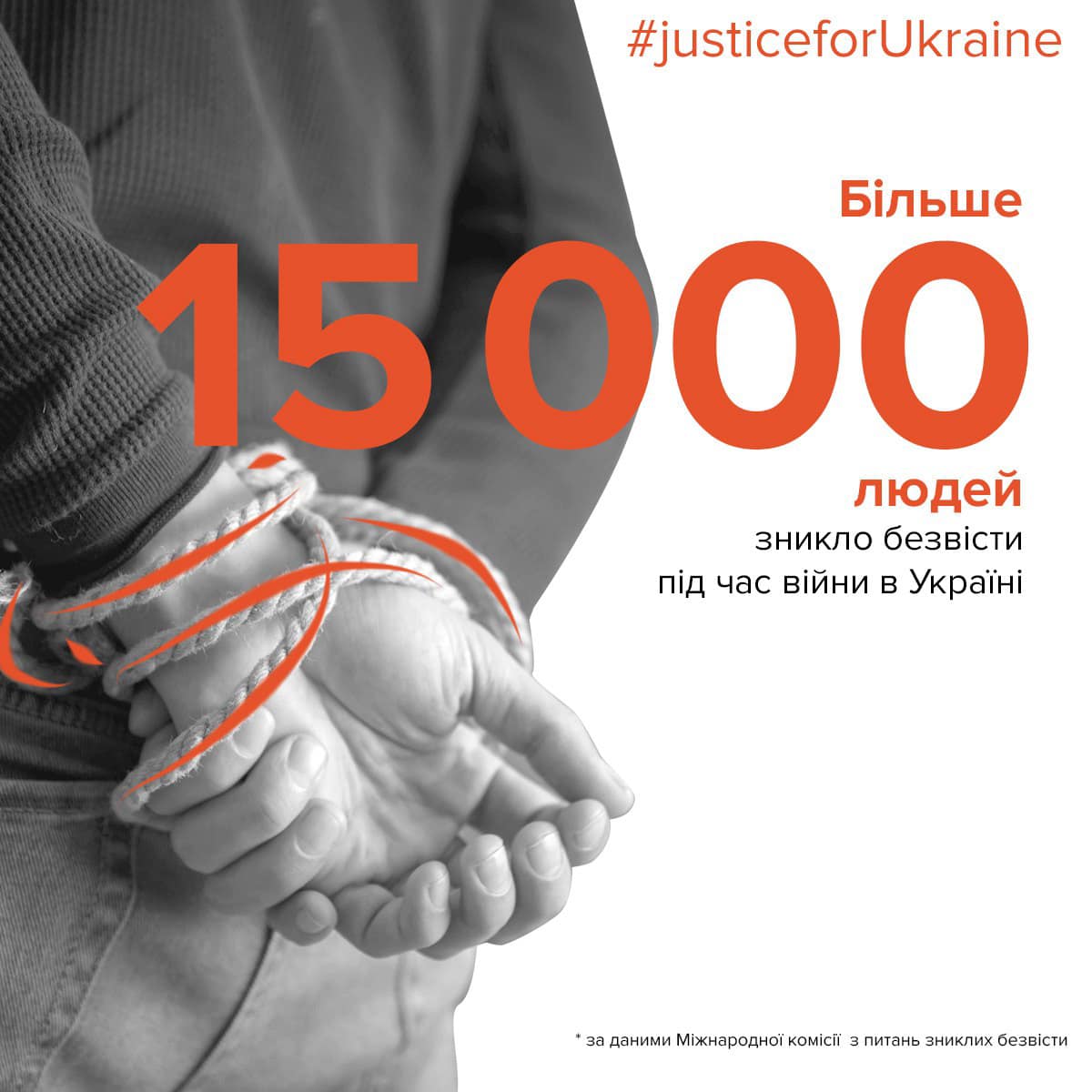«В связи с полномасштабной вооруженной агрессией России против Украины 15 000 человек пропали без вести. Вы только представьте, судьба тысяч людей неизвестна. Кого-то из них уже, возможно, нет в живых. Их всех ищут родные и безграничные страдания в семьях от неизвестности», – говорится в публикации.
