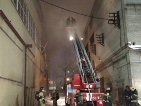 Через два часа огонь распространился до 200 квадратных метров. Вспыхнуло двухэтажное сооружение на территории рядом с заводом «Звезда», производящим дизельные двигатели, в том числе для ВМФ.