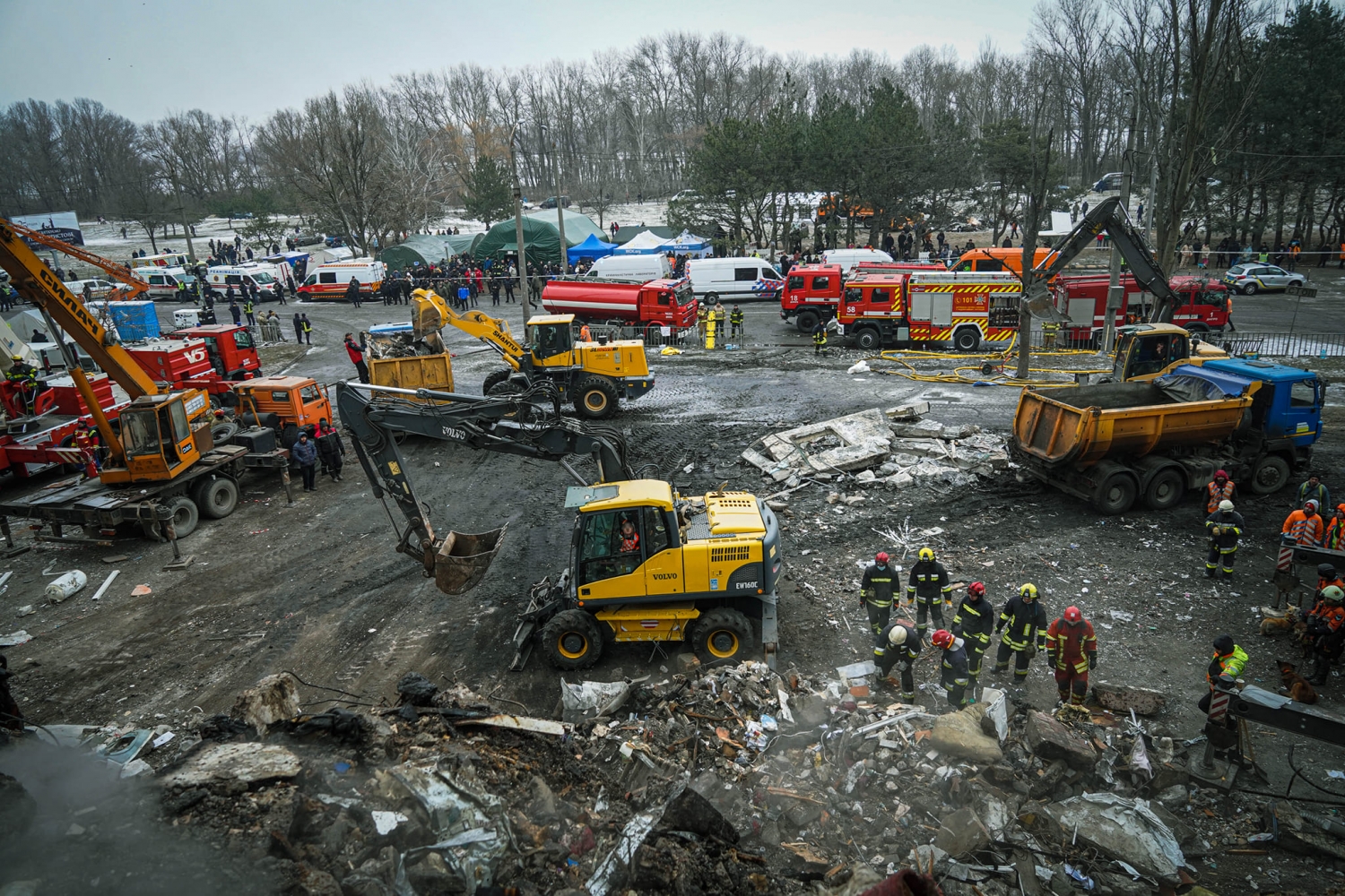 Развернуто 14 палаток для обогрева и питания пострадавших, выдачи одежды и вещей первой необходимости, а также обеспечения работы органов управления. Психолои ГСЧС оказали помощь 98 пострадавшим. Продолжаются поисково-спасательные работы и демонтаж опасных конструктивных элементов.