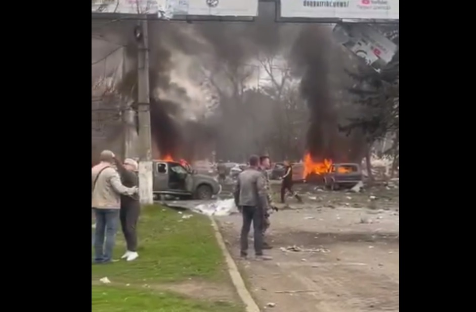 Владимир Зеленский опубликовал видео с места прилетов. На нем видны разрушения и пожар в нескольких машинах. Он также заверил, что Украина не простит врагу издевательства над людьми, смертью и ранением.