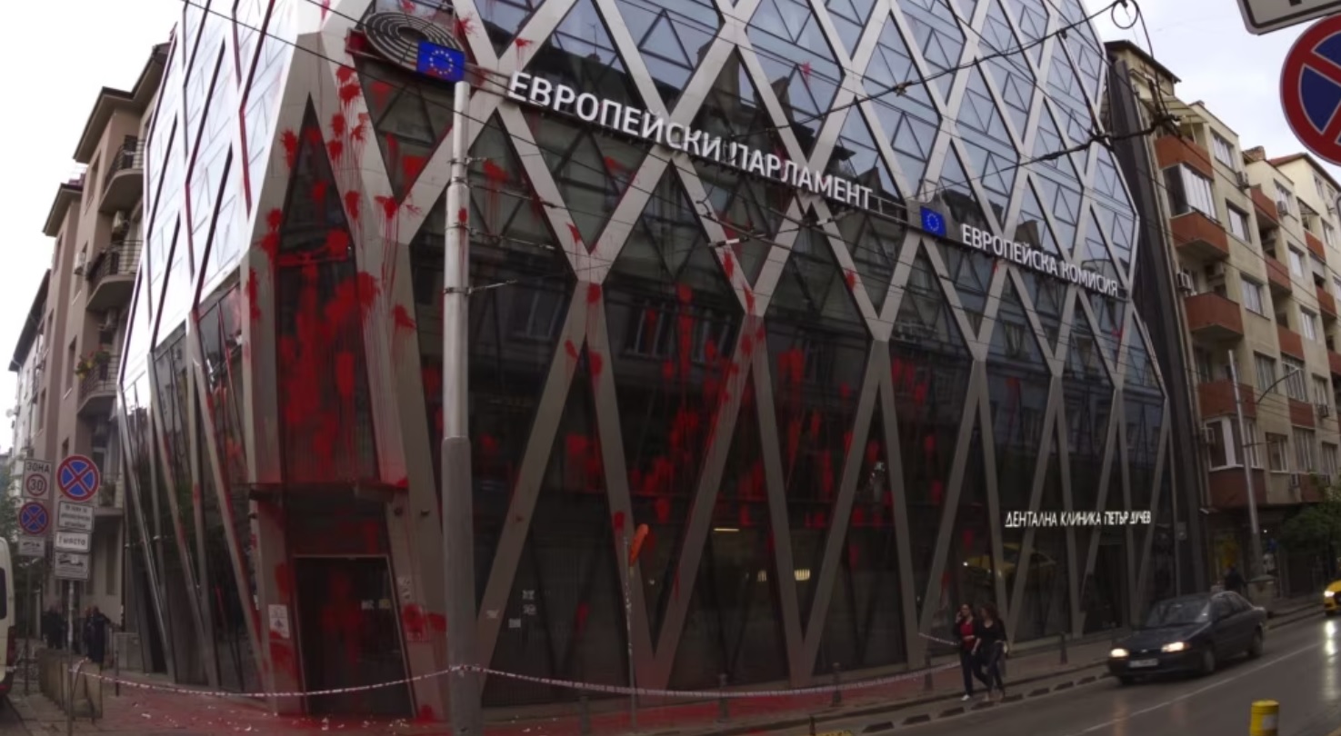 В Болгарии участники пророссийской акции облили красной краской здание в Софии, где работают представители Европейской комиссии и Европейского парламента. Они призвали свое правительство прекратить помощь Украине.