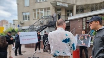 Сторонники руководительницы медицинской службы батальона «Волки Да Винчи» Алины Михайловой в Киеве облили неизвестной жидкостью из бутылки, зеленкой и бросили в помойку экс-народного депутата Тараса Чорновила.