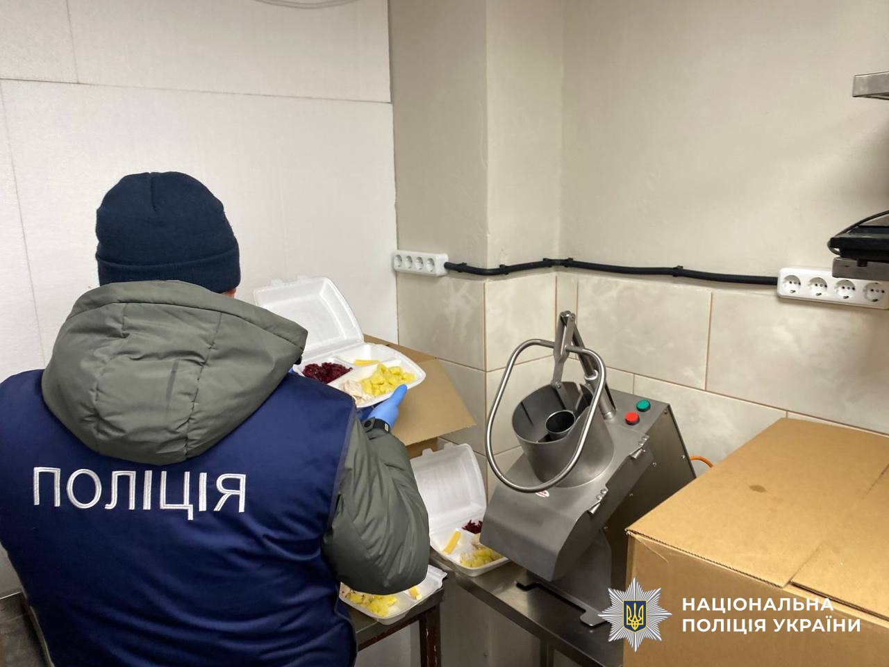 На місці обшуків правоохоронці вилучають зразки їжі та документацію. Фото: НацполіціяНа месте обысков правоохранители изымают образцы пищи и документацию. Фото: Нацполиция