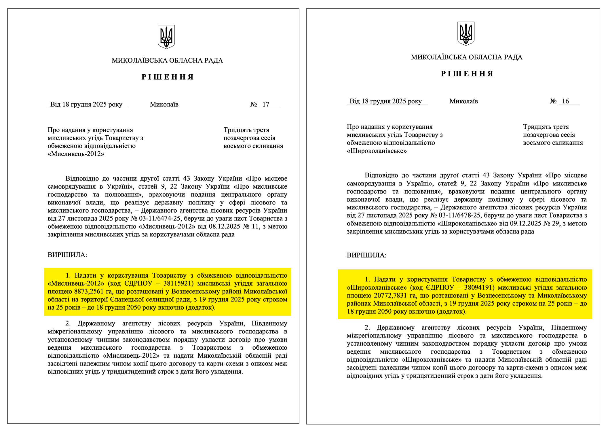 Напомним, 18 декабря Николаевский областной совет провел последнее в этом году пленарное заседание сессии, где в том числе предоставил разрешение на пользование охотничьими угодьями 4 предприятиям.