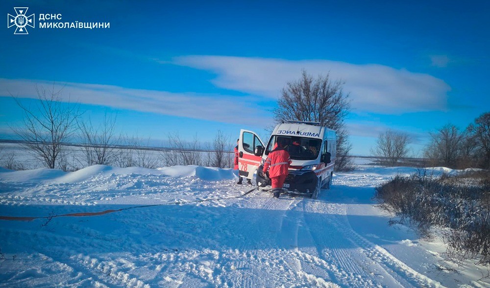 В Николаевской области спасатели помогли вытащить скорую из снежного заноса