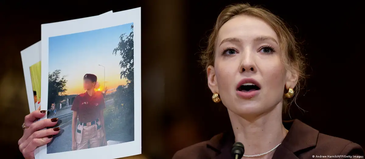 Екатерина Рашевская во время выступления в Сенате продемонстрировала фото заретушированным лицом 16-летней Лизы, которая ездила в СондовонВо время слушаний в Сенате США правозащитница и эксперт Регионального центра прав человека Екатерина Рашевская сообщила, что за два года по меньшей мере двух детей с временно оккупированных территорий Украины россияне возили в лагерь «Сондовон» в КНДР на «перевоспитание». Редакция расследований «Общественного» установила детали этих поездок.