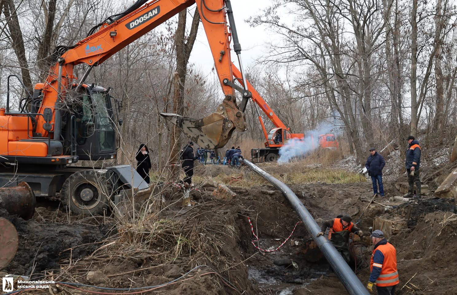 Отмечается, что дюкер ввели в эксплуатацию в 1988 году, и он является единственным источником водоснабжения для трех микрорайонов. На месте аварии непрерывно работают специалисты коммунального предприятия «Николаевводоканал» и предприятия «ВиК Технологии».