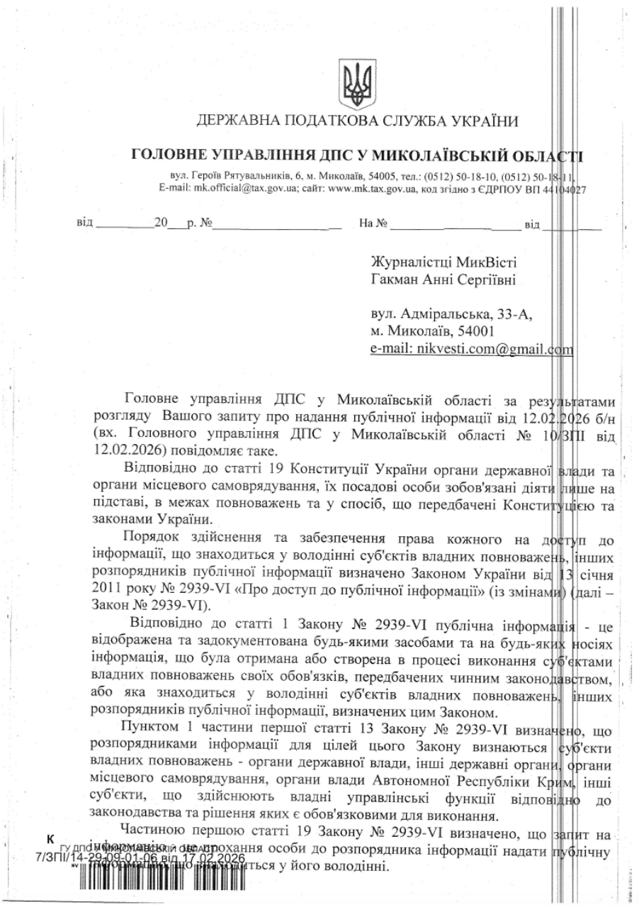 Об этом «НикВести» сообщили в Главном управлении ГНС в Николаевской области в ответ на информационный запрос.