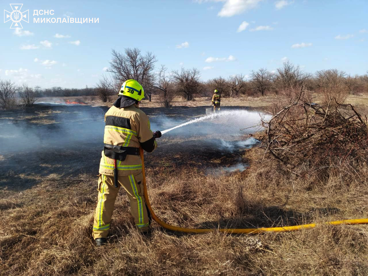 Рятувальники ліквідовують пожежу у Миколаївській області. Фото: ДСНССпасатели ликвидируют пожар в Николаевской области. Фото: ГСЧС