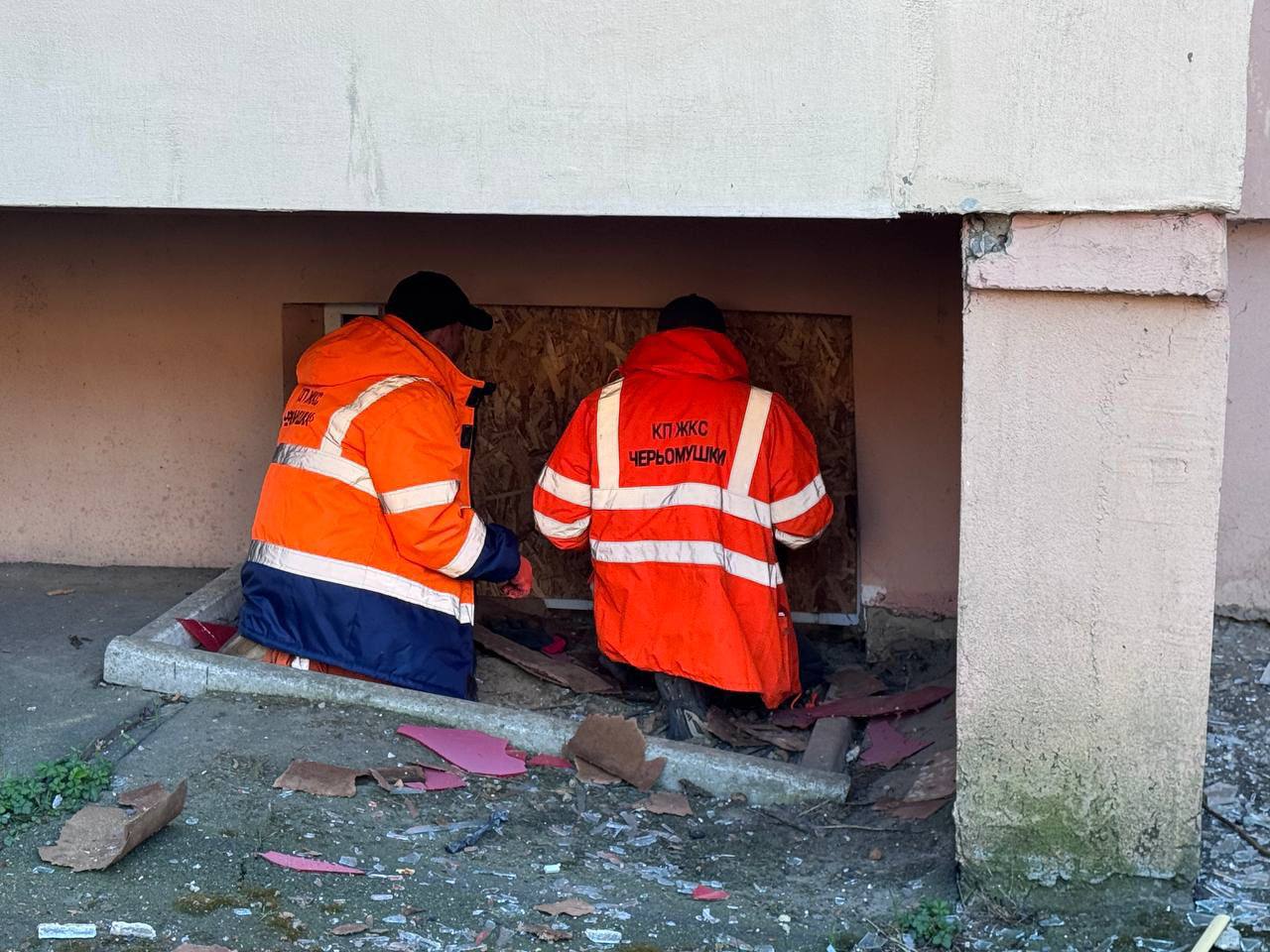В домах выбиты 1059 окон, повреждены 11 дверей и 8 крыш. Коммунальщики уже закрыли 617 выбитых окон, а 81 владелец от помощи отказался. С территории вывезли 66 кубических метров строительного мусора.