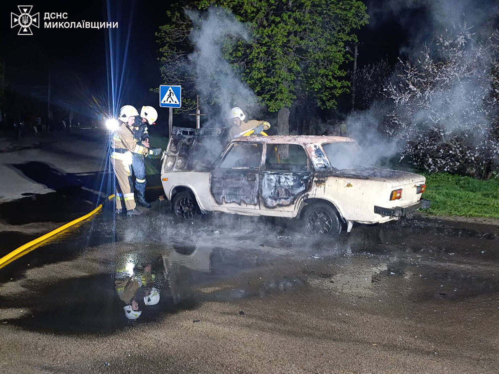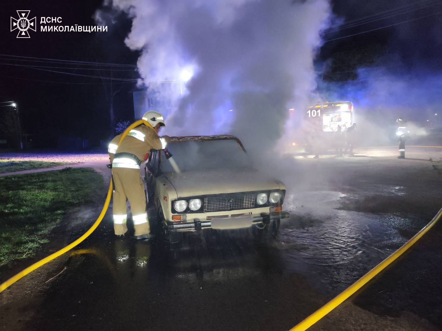 Ночью в поселке Врадиевка Первомайского района загорелся легковой автомобиль ВАЗ 2106. Пожар потушили на площади 4 квадратных метра, огонь частично повредил проводку моторного отсека.