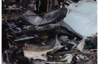 Как видно на фото, поврежденные машины разбросаны вдоль трассы, а автобус в результате столкновения вообще остался без передней части - от машины остался один каркас.
