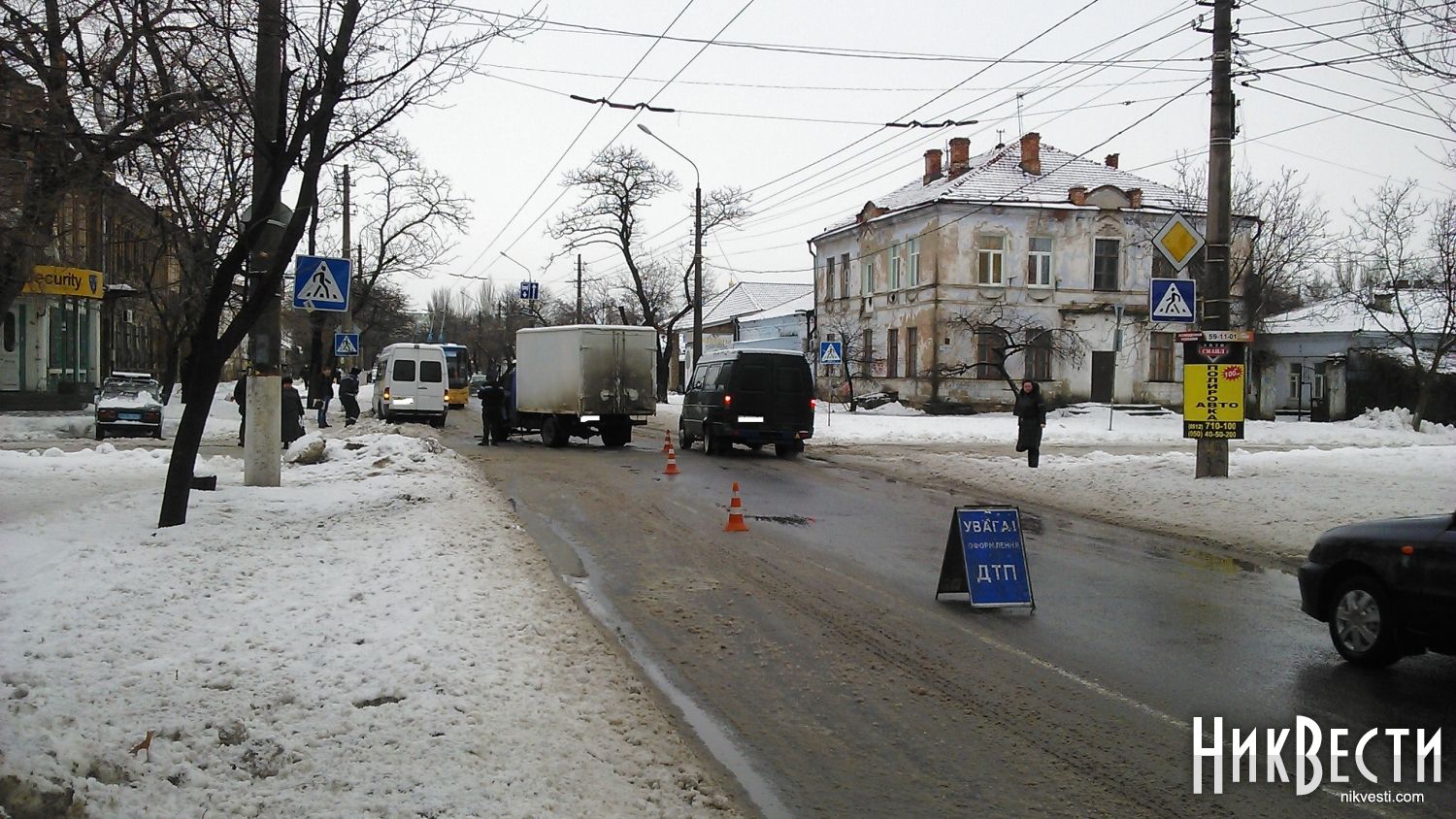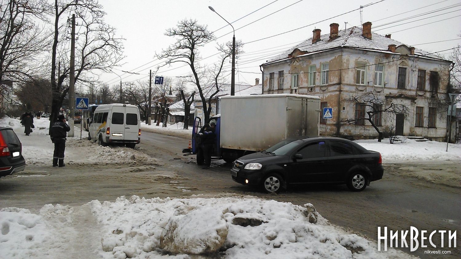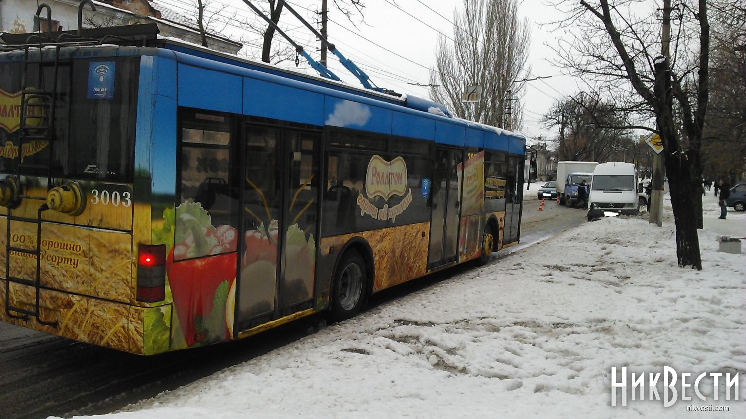 Вследствие столкновения было преграждено движение троллейбусов 6-го маршрута в сторону улицы Советской, передает корреспондент НикВестей с места события.