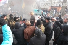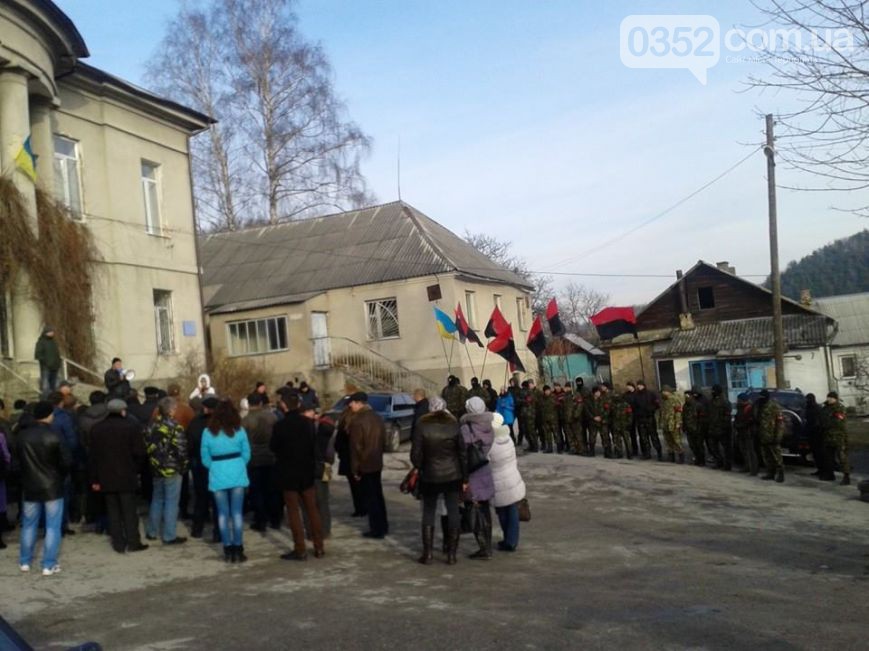 Активисты принесли к зданию шины, которые подожгли, а также мусорный бак. Туда они бросили судью, которая вынесла оправдательный приговор бывшему мэра Почаева, а также главу суда. Также возле райсуда подожгли шины. Судьи заявления на увольнение не написали.