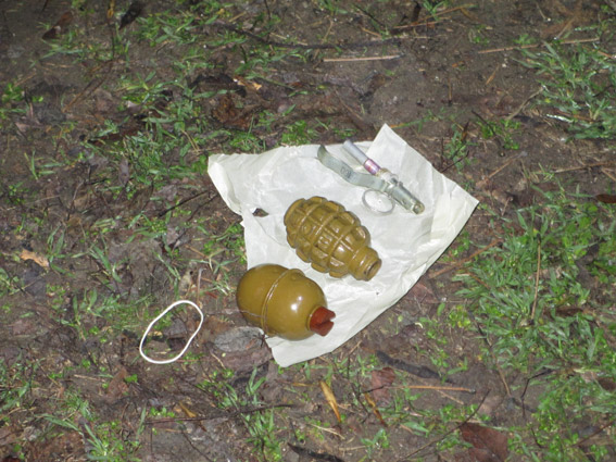 Указывается, что задержанный спокойно воспринял появление милиционеров и подтвердил, что огнестрельное оружие принадлежит ему, но объяснить, как он собирался его использовать и как он его приобрел, отказался. Во время личного обыска в одежде задержанного были обнаружены гранаты Ф-1 и РГД-5.