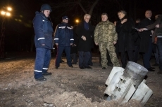При осмотре разрушенного дома в центре города, в который попал снаряд системы «Смерч», в результате чего пострадали четыре семьи, Президенту были представлены остатки ракет и последствия их разрушительного действия.