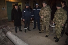 Президент Петр Порошенко также осмотрел несколько жилых домов, которые были разрушены во время артиллерийской атаки. После этого Президент провел оперативное совещание по ситуации в зоне АТО и событиям в Краматорске.