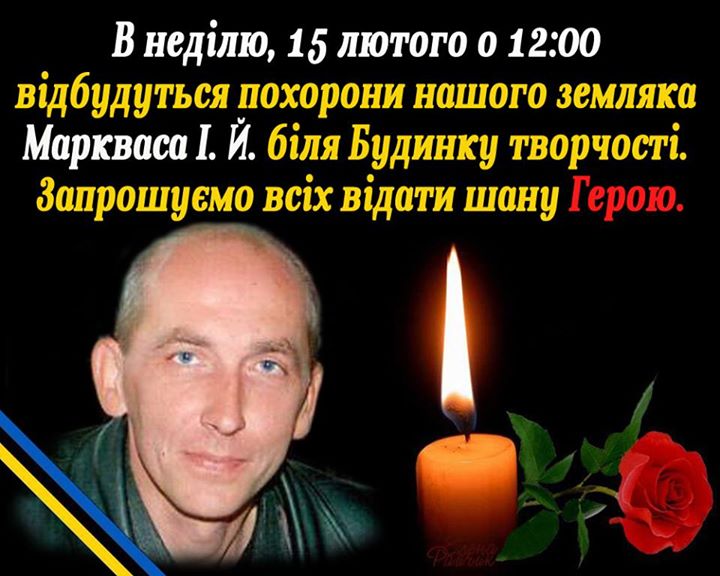 Сегодня, 15 февраля, в Снигиревке Николаевской области похоронят участника антитеррористической операции Игоря Маркваса, который погиб, защищая Украину от террористов и войск РФ.