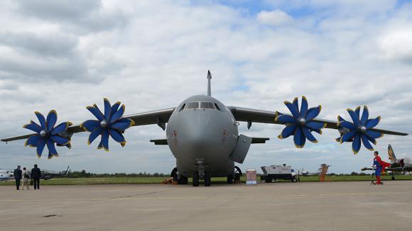 Ан-70 - военно-транспортный самолет короткого взлета и посадки, может использовать необорудованные взлетно-посадочные полосы. Самолет развивает скорость свыше 750 км/ч, дальность полета - до 7,8 тысяч километров. Грузоподъемность - 47 тонн.