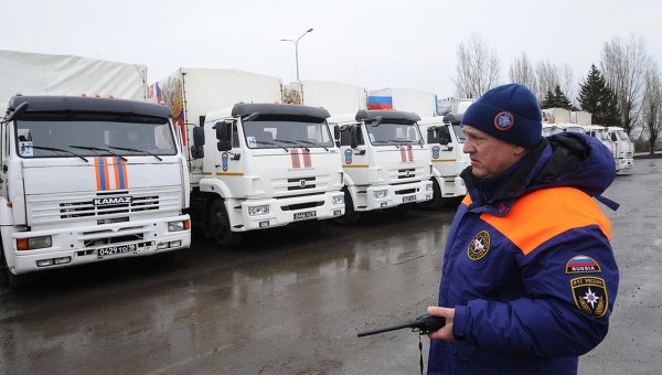 Официально Кремль заявляет, что «гуманитарка» состоит из продуктов питания и предметов первой необходимости, медикаментов и семян для посевной кампании, а также стройматериалов, передают РИА-Новости.