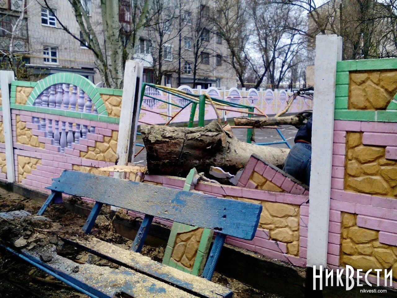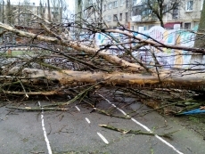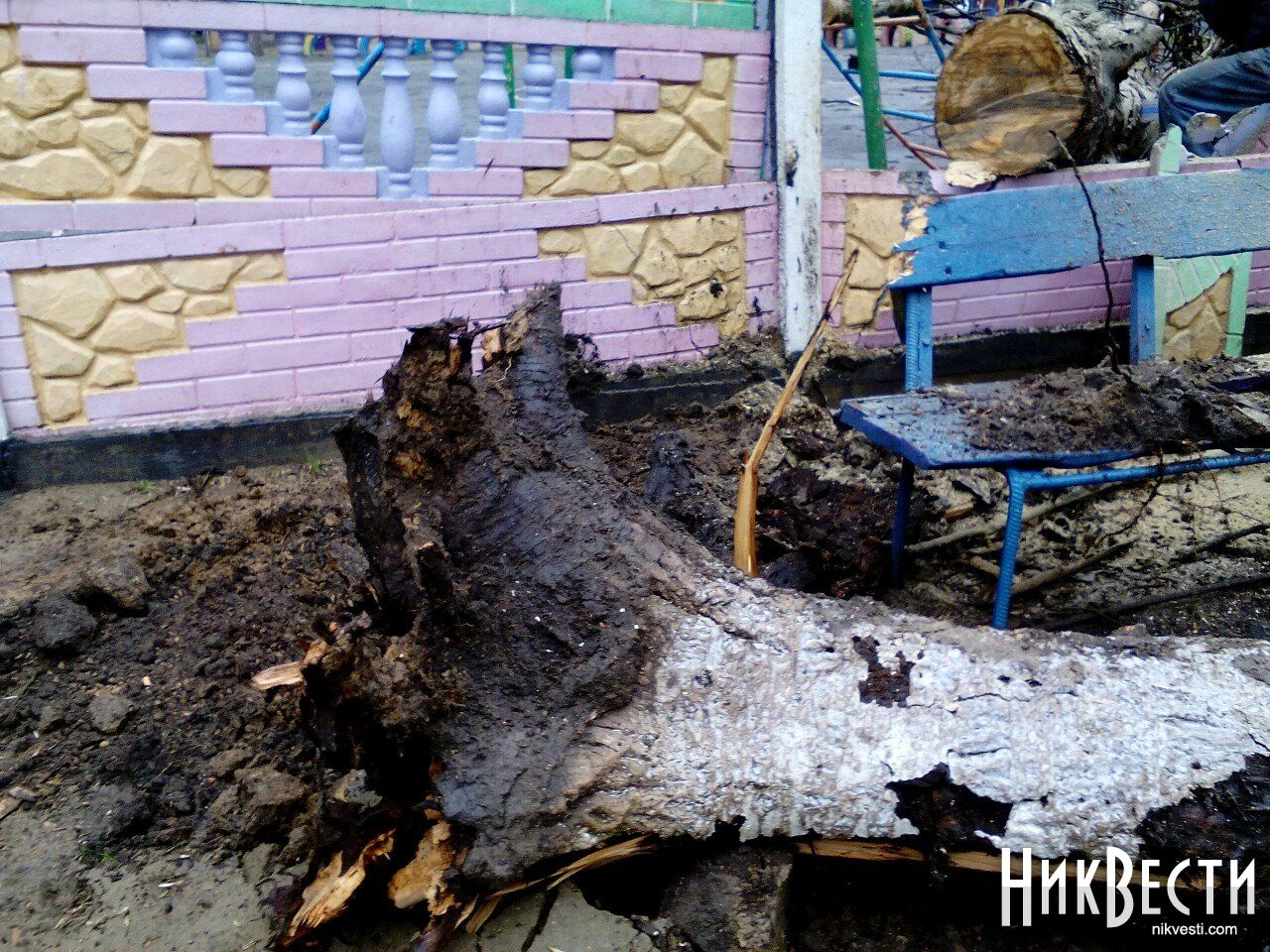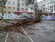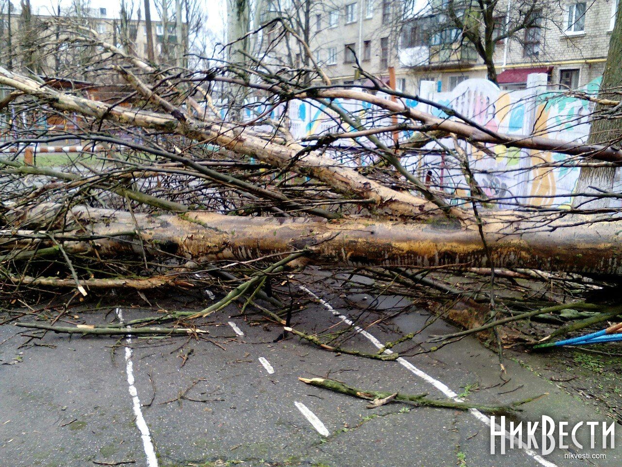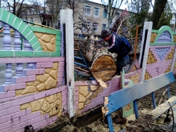 В Снигиревке Николаевской области вследствие сильных порывов ветра сегодня, 3 марта, на территории детского сада обрушился тополь.