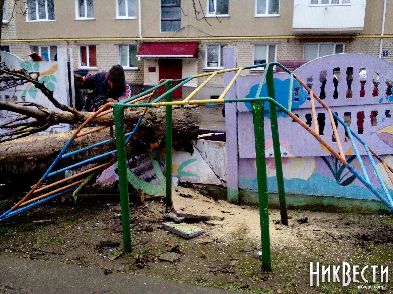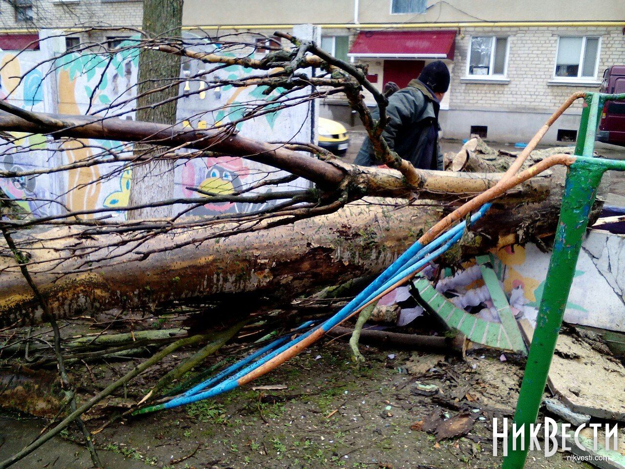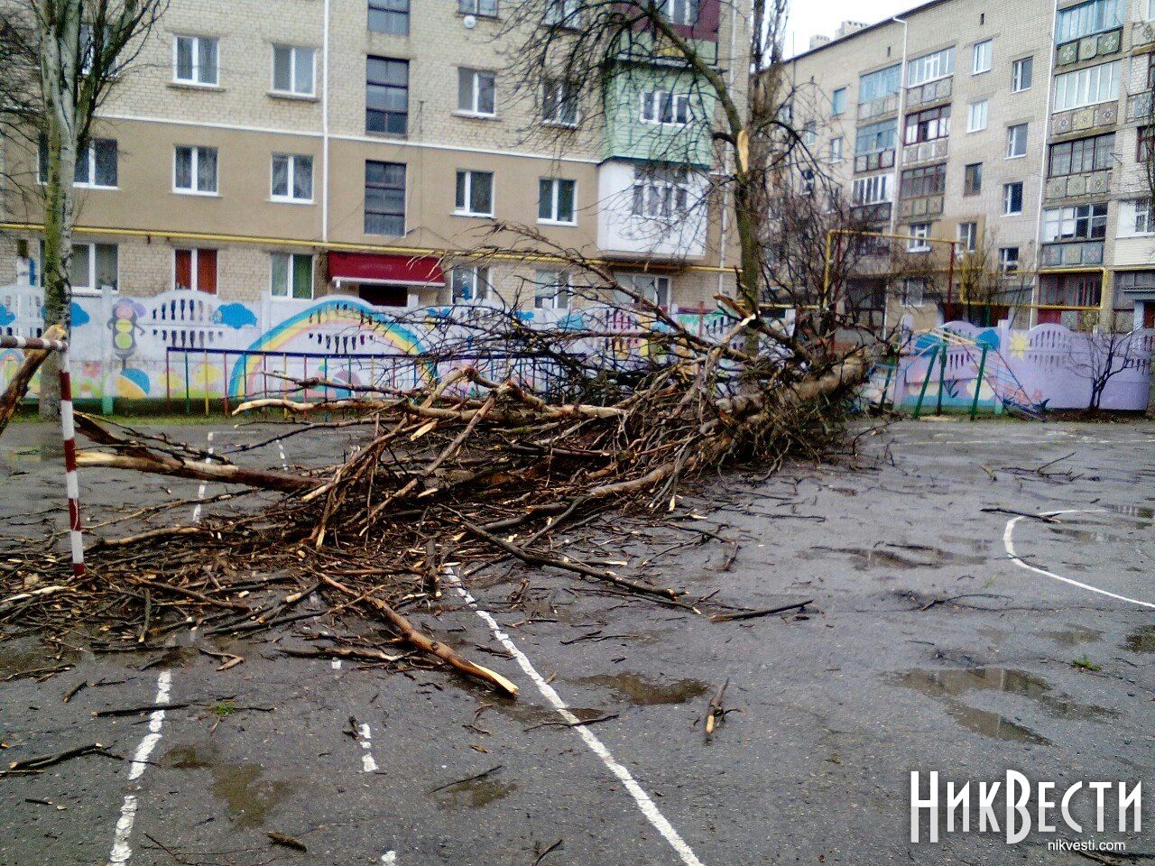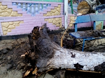 В Снигиревке Николаевской области вследствие сильных порывов ветра сегодня, 3 марта, на территории детского сада обрушился тополь.