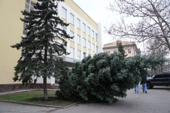 Еще одна ель стала жертвой ветра в центре Николаева