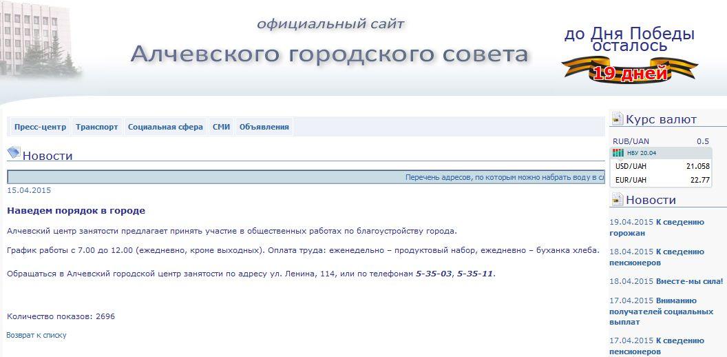 Соответствующее сообщение опубликовано на сайте алчевского горсовета.