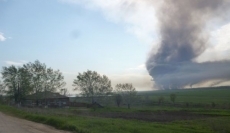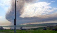 В полевом лагере в Ростовской области РФ произошел взрыв в самоходной артиллерийской установке. Начался пожар, который уничтожил около 30 автомобилей. Жители окрестных хуторов эвакуируются, движение автомобилей прекращено.