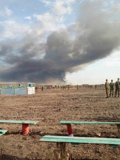 Утром 28 апреля на полигоне прогремел взрыв — из-за замыкания электропроводки произошло возгорание внутри самоходной артиллерийской установки, в результате чего боекомплект установки сдетонировал. После разлета осколков возник пожар. В результате подрыва установки пострадали несколько военнослужащих — двое были контужены, еще у одного оторван палец. Все трое были госпитализированы.
