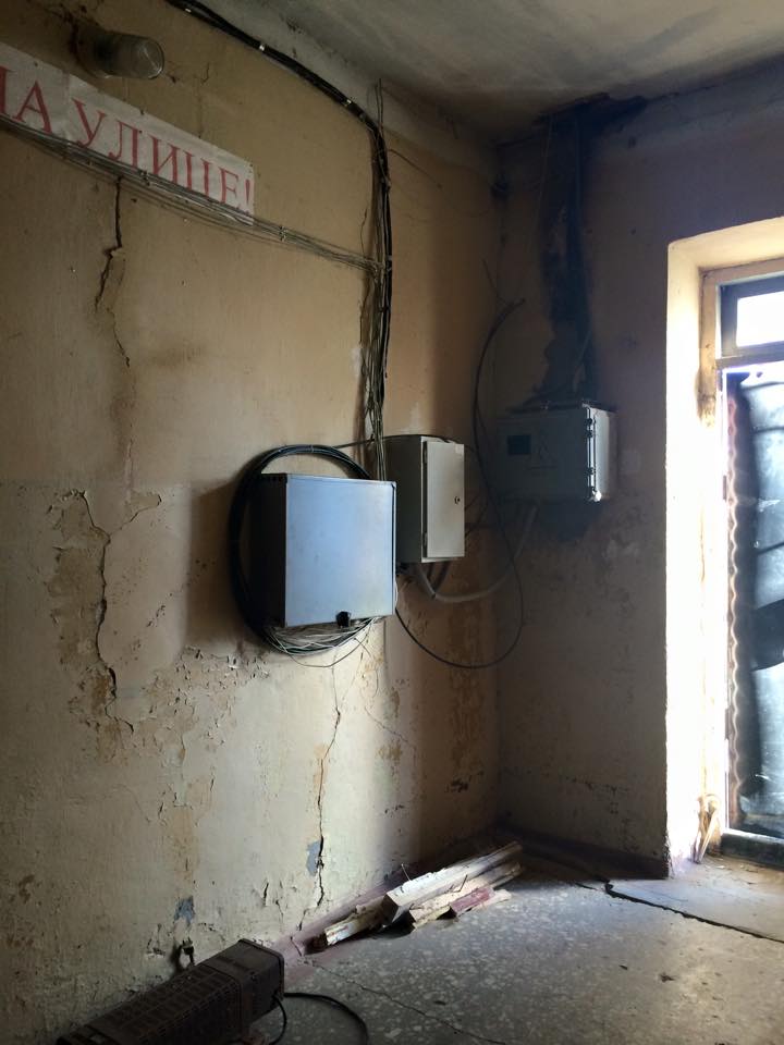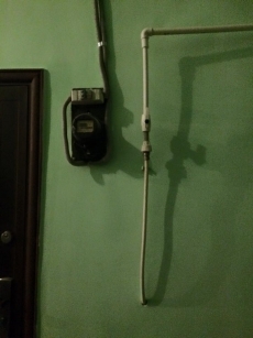 - В коридоре труба водоснабжения пересекается с проводом электропитания;