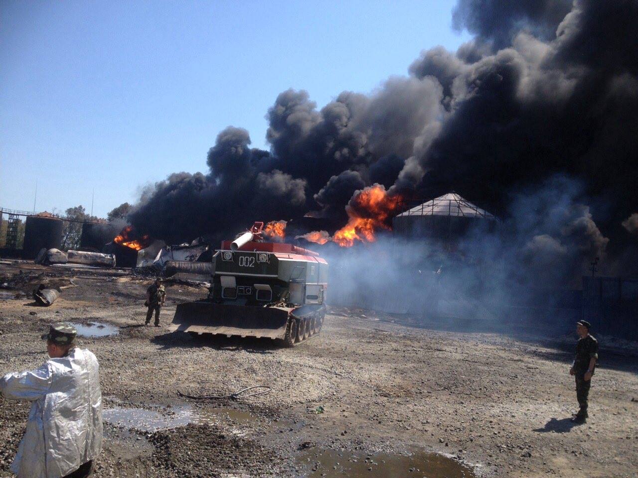 Пожар на нефтебазе начался с возгорания резервуара с топливом около 17:30 в понедельник, 8 июня. Позже огонь перекинулся еще на 16 заполненных резервуаров.