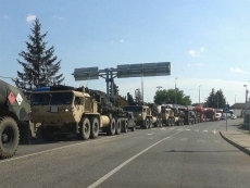 На границе Венгрии с Украиной сфотографировали колонну военной техники.