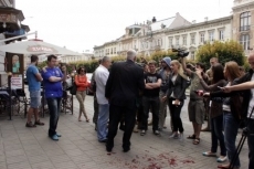 Как сообщает Zaxid.net, двое представителей "Правого сектора" подбежали к политику, который вышел на улицу после пресс-конференции, и вылили на него кровь из пластиковых бутылок с криками: "Приемной "Оппозиционного блока" во Львове не будет, едьте в ДНР" и "Оппозиционный блок убивает украинцев".