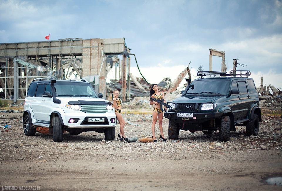 Фотографии опубликовал Артур Ахмадуллин в автомобильной соцсети Drive2.ru. Девушки позируют на фоне руин аэропорта, где погибли десятки украинских военных, с российским флагом и оружием в руках. Рядом с ними стоят два автомобиля, на одном из них надпись ЛНР.